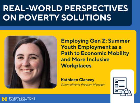 The Real-World Perspectives on Poverty Solutions speaker series introduces key issues regarding the causes and consequences of poverty through an in-person and virtual lecture series featuring experts in policy and practice from across the nation. Our goal is to help build a broad community of learners to engage in these issues.