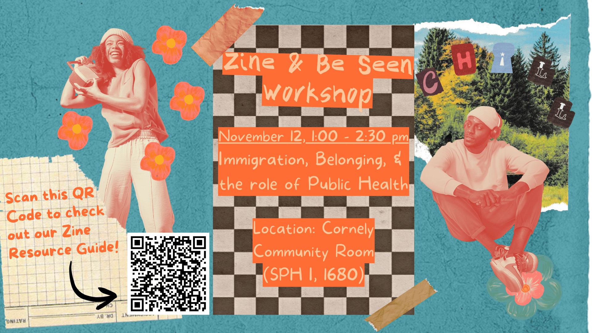 Public health research has illustrated the various and multi-level health impacts of deportation. What does it mean to resist deportation as a student, neighbor, or Public Health professional? This workshop invites us to reflect on our “public health why” in the context of immigration justice and belonging. Through hands-on zine-making, we’ll explore the power of creative resistance; from individual acts to community and Public Health informed strategies, and how public health can be a tool for disruption, solidarity, and community care. To spark reflection and ideas, we’ll draw upon resources such as the Health Affairs article on immigration and protest and the HIP Public Health Guide for Immigration Justice, along with images and materials for collage. Together, we’ll create zines that amplify stories and strategies of resistance and envision healthier, more just communities. No artistic skills required! Just a willingness to play and experiment.
